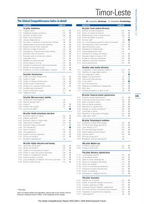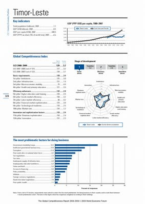 Os quadros relativos a Timor Leste são os que seguem abaixo (clique para aumentar a imagem) e colocam o país em 129º lugar num total de 134 países. Leia as instruções para ler os quadros.